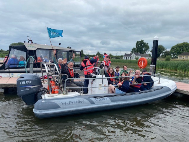 Back at the shoreline Portrun Development partnered with Lough Ree Access for All Boat. The group boarded the boat and were treated to a trip on Lough Ree stopping at the shoreline of Inch Cleraun (Quaker Island) or sometimes also referred to as Island of the Seven Churches, one of which was visible from the stop point.